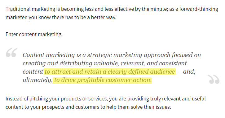 Instead, the emphasis is placed squarely on your audience/customers. Specifically, content marketing is about: