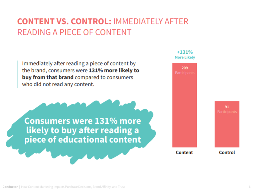 - After reading a brand’s educational content, people were 131% more likely to purchase from them