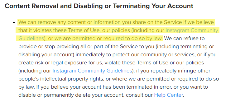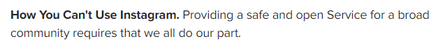 If you have a large follower count but no engagement… well, that’s an oxymoron AND a red flag. Instagram will easily find your fake account and shut it down, according to their Terms of Use.