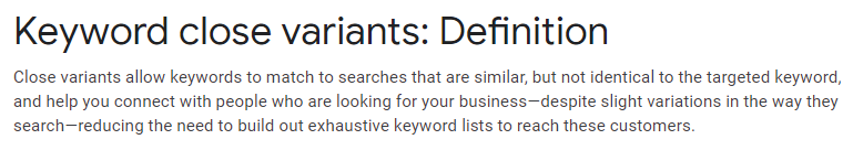 Google has previously defined “close variants” for keywords. Essentially, this means keywords with slight rewording but the same meaning will pull up the same results.