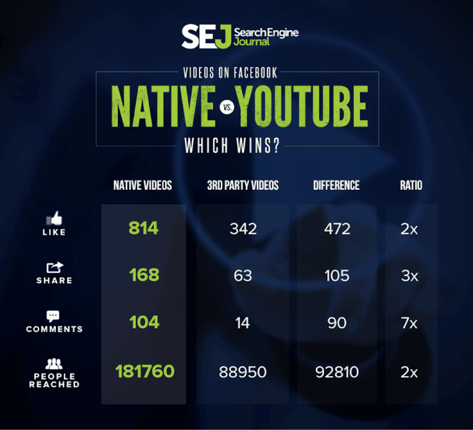 According to Brent Csutoras from Search Engine Journal, native videos reach 2 times the number of users as a 3rd party video, which brings in quite a bit more traffic for businesses.