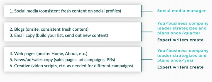 We’ve already looked at the six types of content you need to boost your online presence and brand. Now, let’s look at what you should delegate to members of the staff you’ve hired.