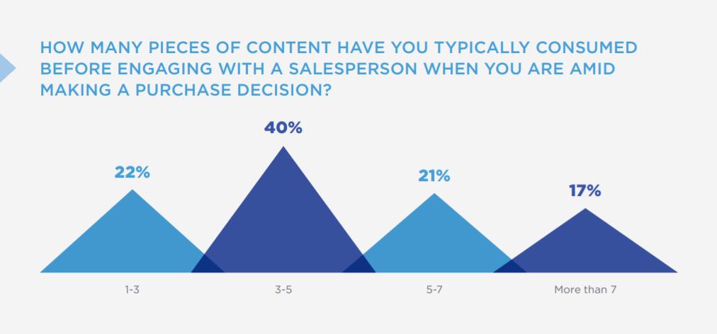 A whopping 71% of B2B buyers read some type of content during the buying process. They didn’t just read one piece, either. Multiple content pieces played a role – 3-5 on average.