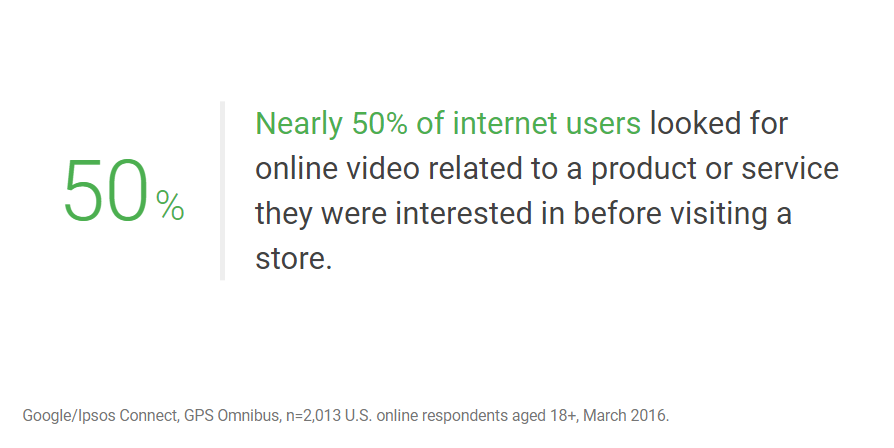 13. Before doing any further shopping, 50% of internet users searched for videos on products or services that captured their interest. (Google)