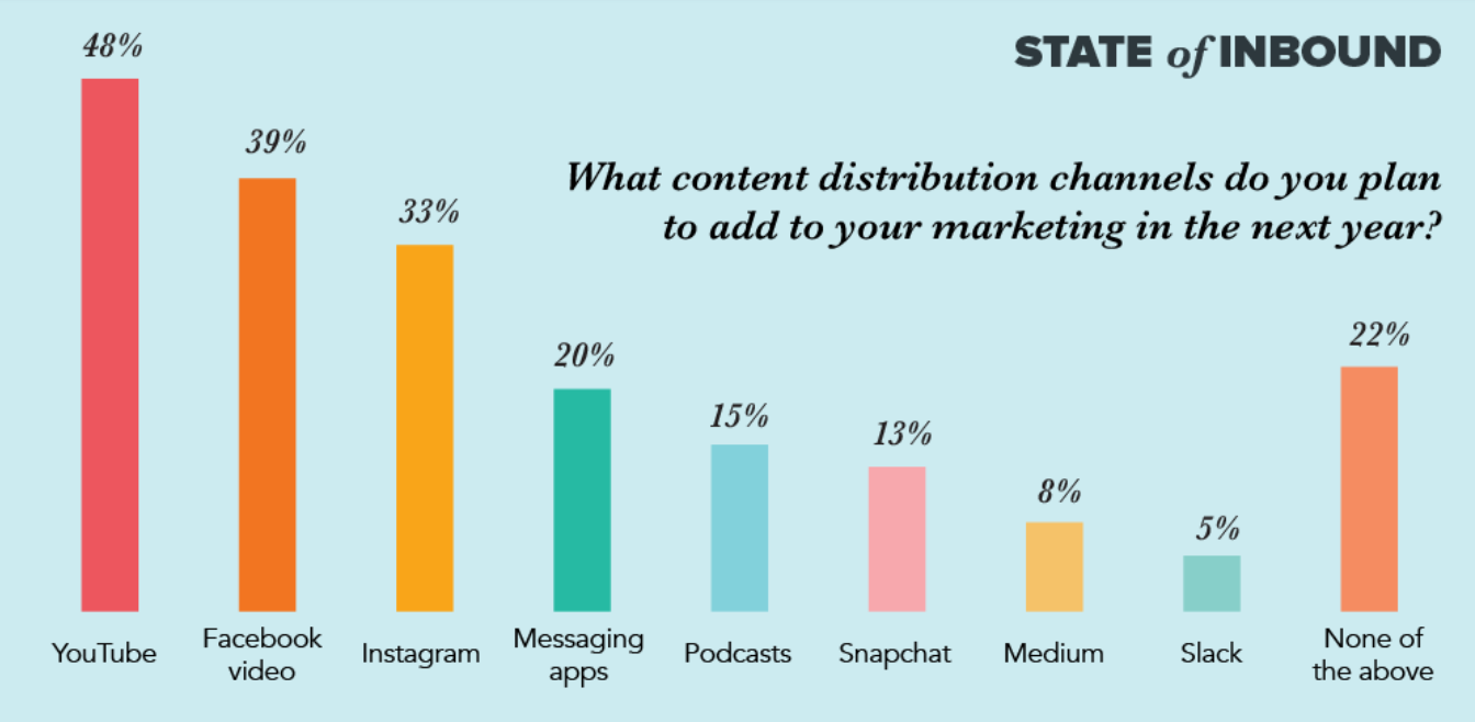 And according to HubSpot’s State of Inbound report, more marketers are going to be hopping on the video content bandwagon in response. 48% of marketers plan to add a YouTube channel to their content marketing strategy next year.