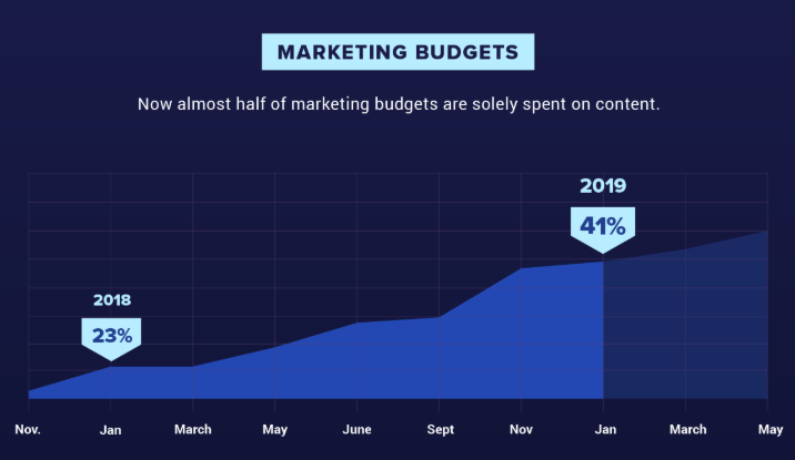 8. 41% of all marketing budgets are spent on content. (Zazzle Media)