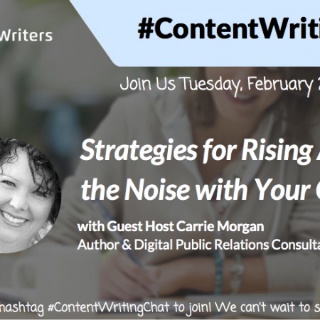 If you missed this week’s #ContentWritingChat, there’s no need to worry. I have you covered with a recap of some of the best tweets from the chat. Our topic was Strategies for Rising Above the Noise With Your Content with a wonderful guest host, Carrie Morgan. If you want to learn how to create better content that stands out, keep on reading!
