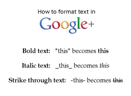 9. Use bold and italic text styles. One of the exciting features that sets Google Plus apart from other social media networks is the capability of posting with bold, italic and strike through text. These styles can make your posts stand out while also making them impactful. Take advantage of these capabilities. This image from Blog Tyrant shows you how: