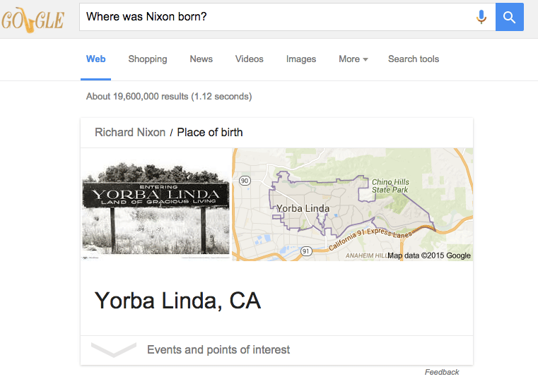 This, ultimately, is an extension of a program called The Knowledge Graph, which Google released in 2012. The Knowledge Graph was Google’s way to reach toward becoming more intelligent about the connections between words. With the inception of this program, Google moved toward doing what it called searching for “things not strings.” This meant that Google went beyond searching only for information that matched a string of letters and began, instead, searching for pages that provided answers to the questions a person was probably asking through their search queries. For example, The Knowledge Graph allows searchers to enter a term like “when was Nixon born?” and get an answer complete with maps without ever specifying that you mean President Nixon.