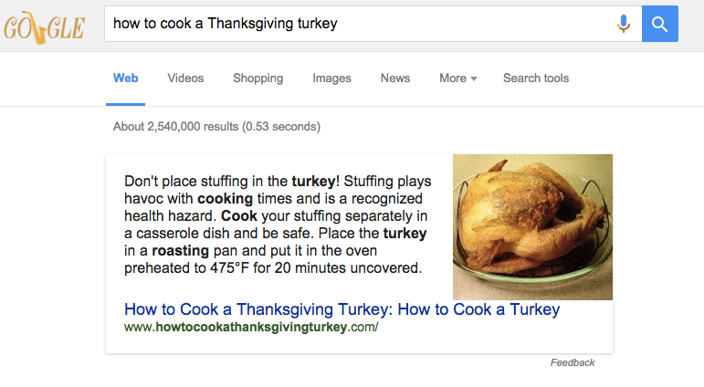 The trend toward more information with every search has already been exhibited through Google’s rich answers. Instead of displaying a simple response when a query is issued, Google progressively upped its rates of rich answers, which is an attempt by the search engine to answer queries in a way that doesn’t require users to click through a website. Rich answers include things like snippets, charts, tables, maps, forms, sliders, and images. Consider the following example of a rich answer: