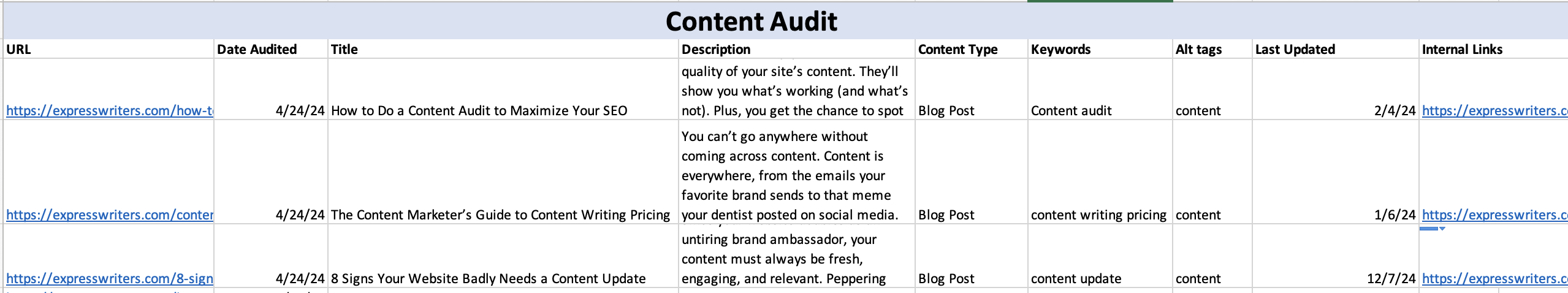 To truly understand your content and its performance, you’ll want to inventory what content currently lives on your website. It’s the only way to ensure you review every page for quality, value, and optimization.