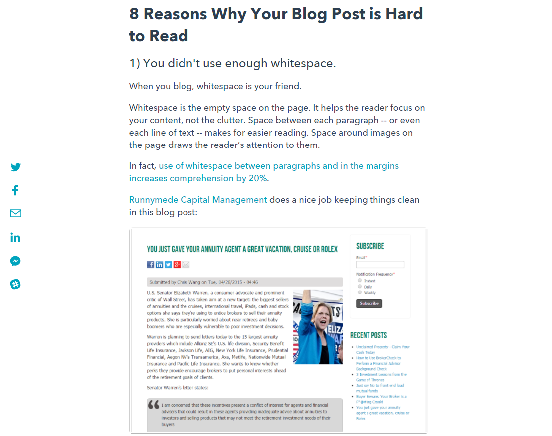 On the other hand, if you fill your page with walls of text, this is HubSpot’s top reason why your blog might be hard to read.