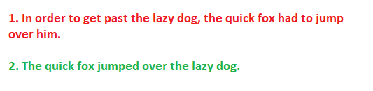 Both of these sentences say the same thing. Sentence #1 is 16 words long. Sentence #2 is 8 words long. In half the time, you can say the exact same thing.
